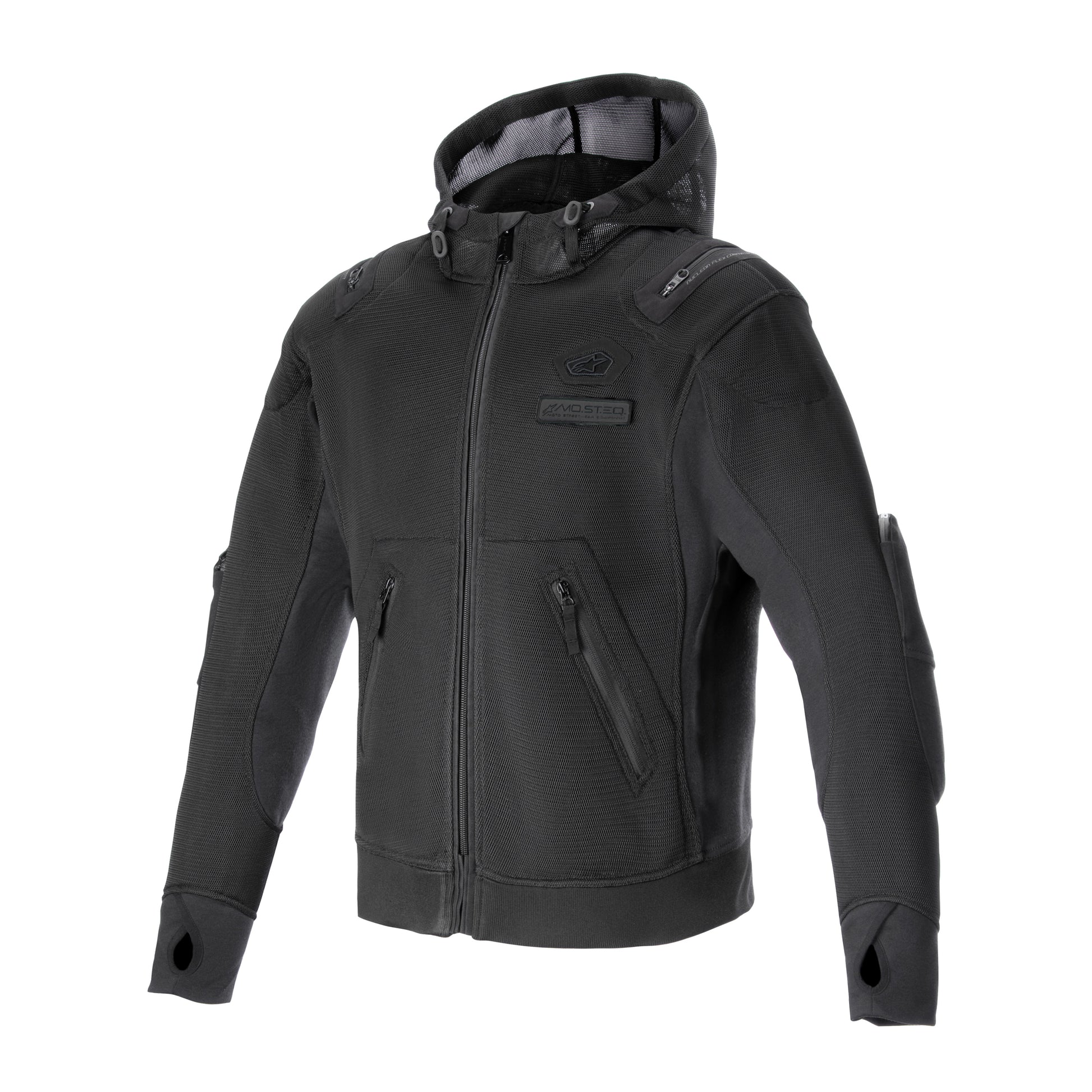 The Moflow Air Tech Hoodie is engineered and optimised for maximum airflow for superior warm weather riding performance, and features a lightweight, low-profile design that delivers protection without compromising style. With a full mesh main chassis, this hoodie allows riders to enjoy optimal ventilation, while its utilitarian aesthetic looks great in any urban environment, on and off the bike.Key Features• Full, high density structural mesh construction for superior airflow and ventilation.• Mesh hood with two drawstring adjusters to reduce wind buffeting when riding.• Technical stretch insert panels on the full length of the sides and the entire length of the inner arms for enhanced fit and optimum rider comfort.• Engineered with no inner lining for optimum light weight and a more streamlined, casual design.• Two hands pockets and an internal waterproof pocket for real-world practicality.• Elasticated waist for an enhanced fit.• Two loops to anchor to Alpinestars pants for a secure fit and the prevention of wind ingress.• Diagonal external zippered side pockets for real-world practicality and the safe storage of essentials.• Anchoring hole for thumb on the sleeves to keep ensure the sleeves remain in positon and do not ride up the arm.Protection• Nucleon Flex Plus CE Level 1 rated shoulder and elbow armour for superior impact protection.• Protective and comfortable Nucleon Flex Plus armour is highly flexible and breathable, and has a thin profile for optimum rider comfort.• External compartment for elbow protectors and an internal back pocket for a back protector, all available as optional accessory upgrades.• Tech-Air® 3 ready.• Fully CE-certified riding garment to CE � Category II EN17092-4: 2020 standard � A class.