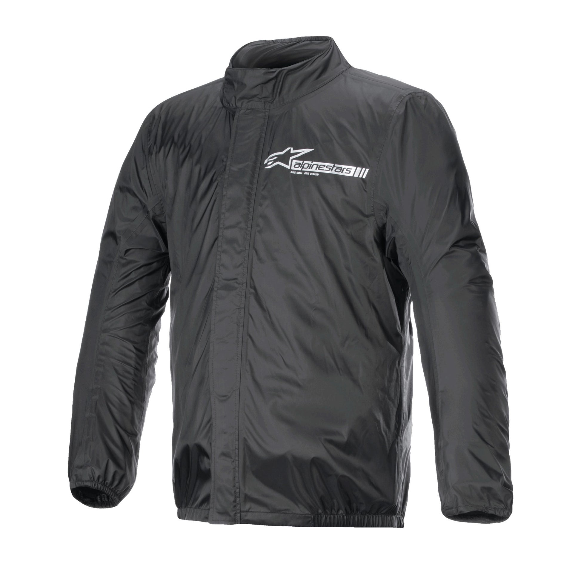 The highly versatile, waterproof Hurricane Rain V2 Jacket has been designed to deliver optimal protection and comfort in wet weather riding conditions. The jacket's packable design allows it to be easily folded up and quickly packed into its convenient built-in carrying pouch – a perfect solution for stowing away the rain gear until it is needed again.Key Features• Ultra-lightweight, rain jacket constructed from 100% waterproof, breathable, and wind resistant laminated fabric with inner comfort mesh lining on the sleeves and upper body. • Front double flap closure with internal zipper and top hook and loop closure for optimal protection against water ingress.• Elasticated cuffs, back collar, and jacket waist band for a tightened closure and the prevention of water entry.• Ergonomic fit on the elbows, designed to provide premium rider comfort.• Jacket comes with an inner pouch that provides convenient storage when the rain jacket is not needed.• Reflective Alpinestars wordmark detailing on upper left chest and centre back provides added visibility during early morning and evening rides.Construction• Constructed from an ultra-lightweight and wind-resistant, laminated fabric that offers 100% waterproofness as well as breathability; with waterproof and breathability ratings: WP: 4,000 mmH2O, BREATHABILITY (MVTR): 6,000 g/m2 (24hours).• The fabric has been specially treated to avoid sticking when worn over textile or leather garments. • The front double flap closure with its internal zipper and top hook and loop closure provides optimum protection against the ingress of water.• Tape-sealed seams for guaranteed waterproof performance.• Elasticated and contoured collar, cuffs, and waist for maximum protection against ingress of wind and water and to ensure optimal riding comfort.• Elongated back for extended coverage in the riding position.• Fixed, lightweight, poly-mesh comfort lining provides improved internal air circulation and enhanced rider comfort.• Reflective detailing improves visibility of rider in poor weather conditions.• The jacket comes with a convenient, built-in compact storage bag perfect for storing the rain jacket when not in use, the bag has a slim handle for easy transport of the rain gear.
