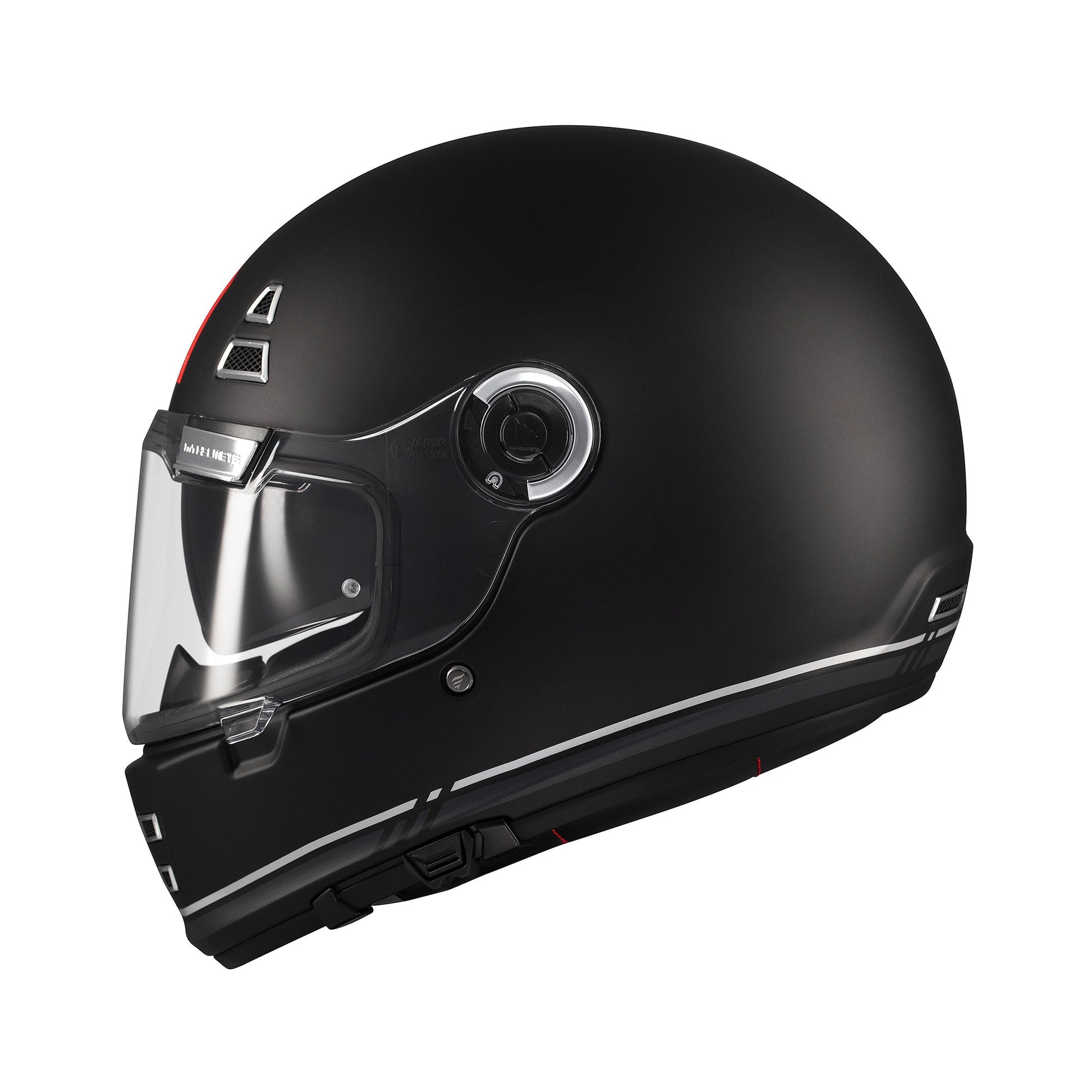 The original, updated. The MT Jarama is a helmet that represents, like no other, the history, tradition and experience in manufacturing that MT Helmets treasures. After more than 50 years protecting motorcyclists, the Jarama returns to the market with a much improved version to pay tribute to the brand that gave it birth. Do you remember the Jarama that you rode your first kilometers on a motorcycle with?Its style harks back to the helmets of the 1980s, but its performance rivals that of any modern full-face helmet. Remarkably safe and comfortable, it features a sun visor for maximum coverage and a universal UCS slot for installing a communication system.Key Features• Shell made of HIRP - High Impact Resistance Polymer, a material that combines the best qualities with respect to the safety-weight ratio• Inner Shell is made of expanded polystyrene of multiple densities for better absorption of impact forces• Micrometric locking with double-tooth retention system for maximum security• Quick-release shield has been designed to emphasise the retro aesthetics combined with the best functionality, incorporating vents to promote internal cooling• Retractable sun visor with a protection level close to 100% thanks to a system designed to attach to the nose deflector • Nasal deflector reduces the generation of mist on the shield• Helmet compatible with Pinlock and Fog-Off anti-fogging systems• Chin covers are included provide excellent aerodynamic protection and reduce noise• Housing for intercom system headset• Available in two shell sizes for head sizes ranging from XS to 2XL• First retro helmet to be homologated under ECE 22.06 regulations• Visor: MT-V-32• Pinlock: DKS479
