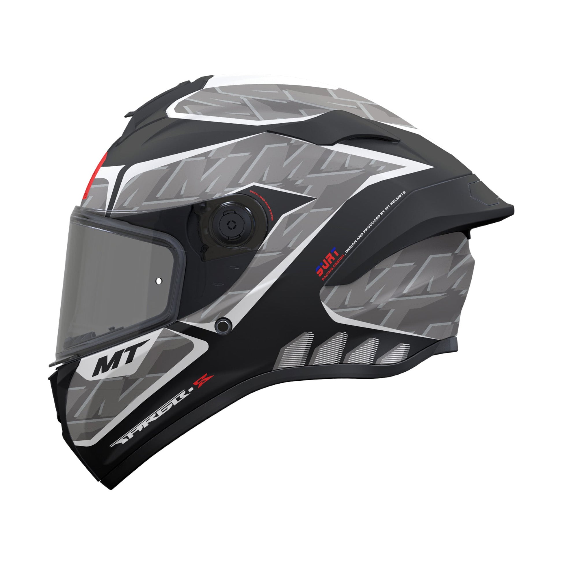 The MT Targo S represents the natural evolution of the Targo Pro, succeeding it to maintain MT's success in this segment with a brand new model that surpasses ECE 22.06 standards. The Targo S boasts ECE 22.06 certification and not only features a new shell design, state-of-the-art interiors, and the ground-breaking MT-QVSS visor system but also incorporates a housing for the universal Bluetooth Communication System (UCS).The new Targo S is an entry-level, full face, sport model that delivers the performance of a racing helmet and provides a high-level protection standard.Key Features• Composition: HIRP (High Impact Resistance Polymer), a material that combines the best qualities with respect to the safety-weight ratio• Number of shell sizes: 1 (XXS to XXL)• Number of EPS liners: 2 (XXS-S and M-XXL)• Available sizes: XXS to XXL• Weight: 1500g +/- 20• Visor: optically correct anti-scratch Polycarbonate visor• Quick Visor Swap System (MT-QVSS): High-resistance visor with MT's QVSS system that makes it easy to change the visor in seconds, even with the helmet on.• Ventilation: newly designed vents, spoiler and extraction system made of polycarbonate (front air intake, upper air intake and triple rear outlets)• Closure: micrometric MT-MDTC type with a double-tooth system• MT-NSIC intercom: housing for standard UCS intercom• Removable interiors: breathable, removable, and washable interior components• Anti-fog insert ready: Fogoff® FOG003 and Pinlock® DKS209• ECE 22.06: designed from the ground up to exceed ECE 22.06 regulations• Visor: MT-V-14B