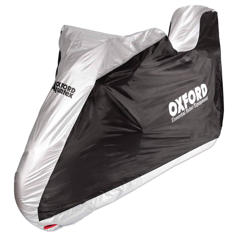 The Oxford Aquatex Topbox is the essential cover for motorcycles and scooters with a top box. As you would expect from the world�s best-selling motorcycle cover it comes packed with useful features and built to last.Police initiatives have also shown that bike covers can be a useful theft deterrent. This is especially true if you secure the belly strap in place and use the cover in conjunction with a chain lock, threaded through the lock holes provided, securing both motorcycle and cover in place at the same time.The UK's most respected motorcycle consumer title RiDE Magazine rated the Aquatex BEST BUY in their market review. They praised the combination of weatherproofing, quality construction, useful additional features and incredible value.Key Features• Double-stitched polyester for strength and durability• Complete exterior and interior protection - can be used both as an outdoor rain cover and an indoor dust cover• An elasticated base with a belly strap, creates a snug and secure fit• Comes with a zipped carrier, to store away compactly when not in use• Strong but lightweight material is UV resistant, so does not degrade in sunlight• Double PU coating for optimal waterproofingIMPORTANT: Do not allow this cover to come into direct contact with hot exhausts, engine parts or sharp objectsSizes